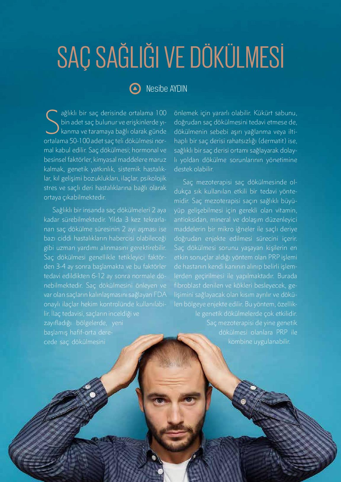 Sağlıklı bir saç derisinde ortalama 100 bin adet saç bulunur ve erişkinlerde yıkanma ve taramaya bağlı olarak günde ortalama 50-100 adet saç teli dökülmesi normal kabul edilir. Saç dökülmesi; hormonal ve besinsel faktörler, kimyasal maddelere maruz kalmak, genetik yatkınlık, si...