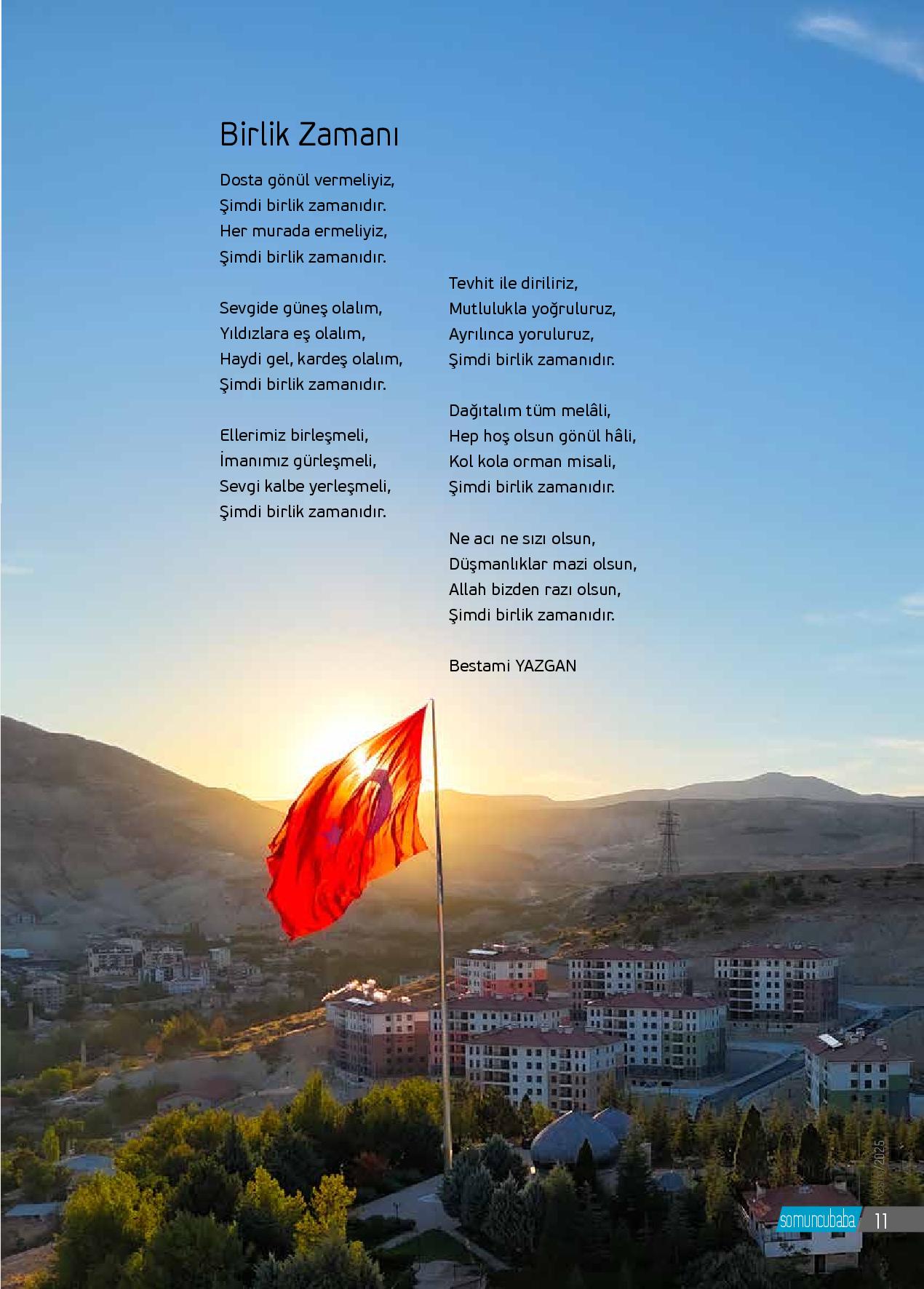 Dosta gönül vermeliyiz,Şimdi birlik zamanıdır.Her murada ermeliyiz,Şimdi birlik zamanıdır.Sevgide güneş olalım,Yıldızlara eş olalım,Haydi gel, kardeş olalım,Şimdi birlik zamanıdır.Ellerimiz birleşmeli,İmanımız gürleşmeli,Sevgi kalbe yerleşmeli,Şimdi birlik zamanıdır.Tevhit ile diriliriz...