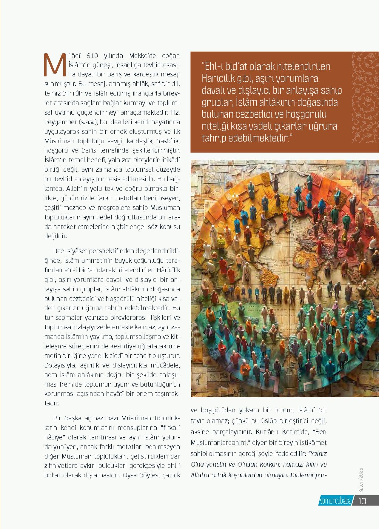 Milâdî 610 yılında Mekke’de doğan İslâm’ın güneşi, insanlığa tevhîd esasına dayalı bir barış ve kardeşlik mesajı sunmuştur. Bu mesaj, arınmış ahlâk, saf bir dil, temiz bir rûh ve ıslâh edilmiş inançlarla bireyler arasında sağlam bağlar kurmayı ve toplumsa...