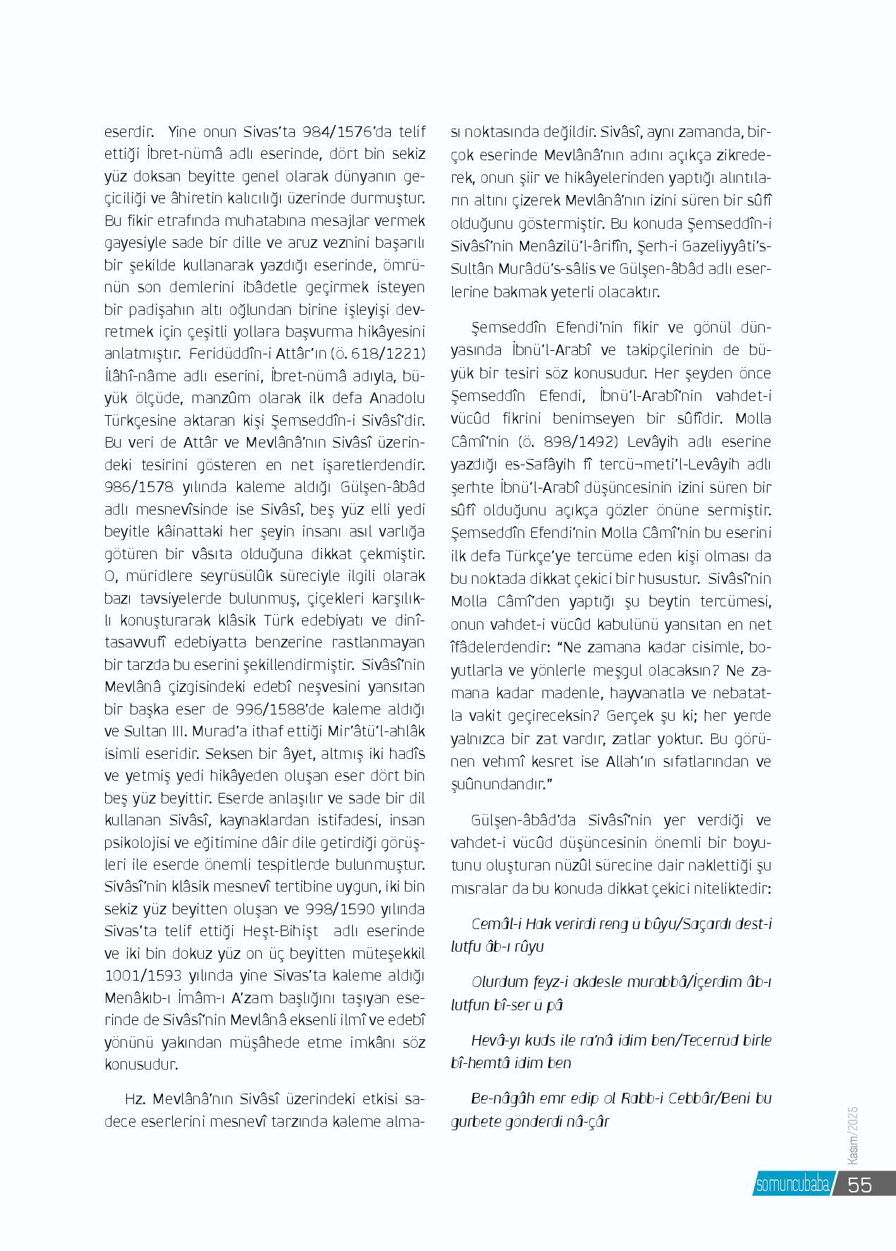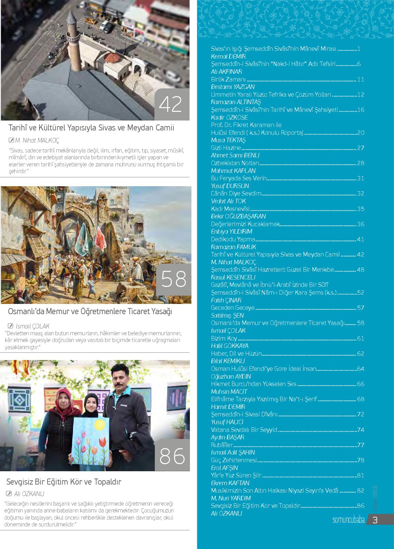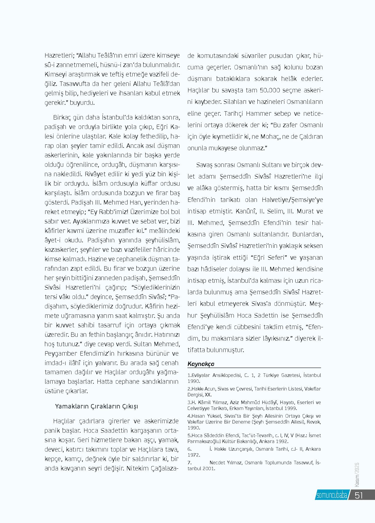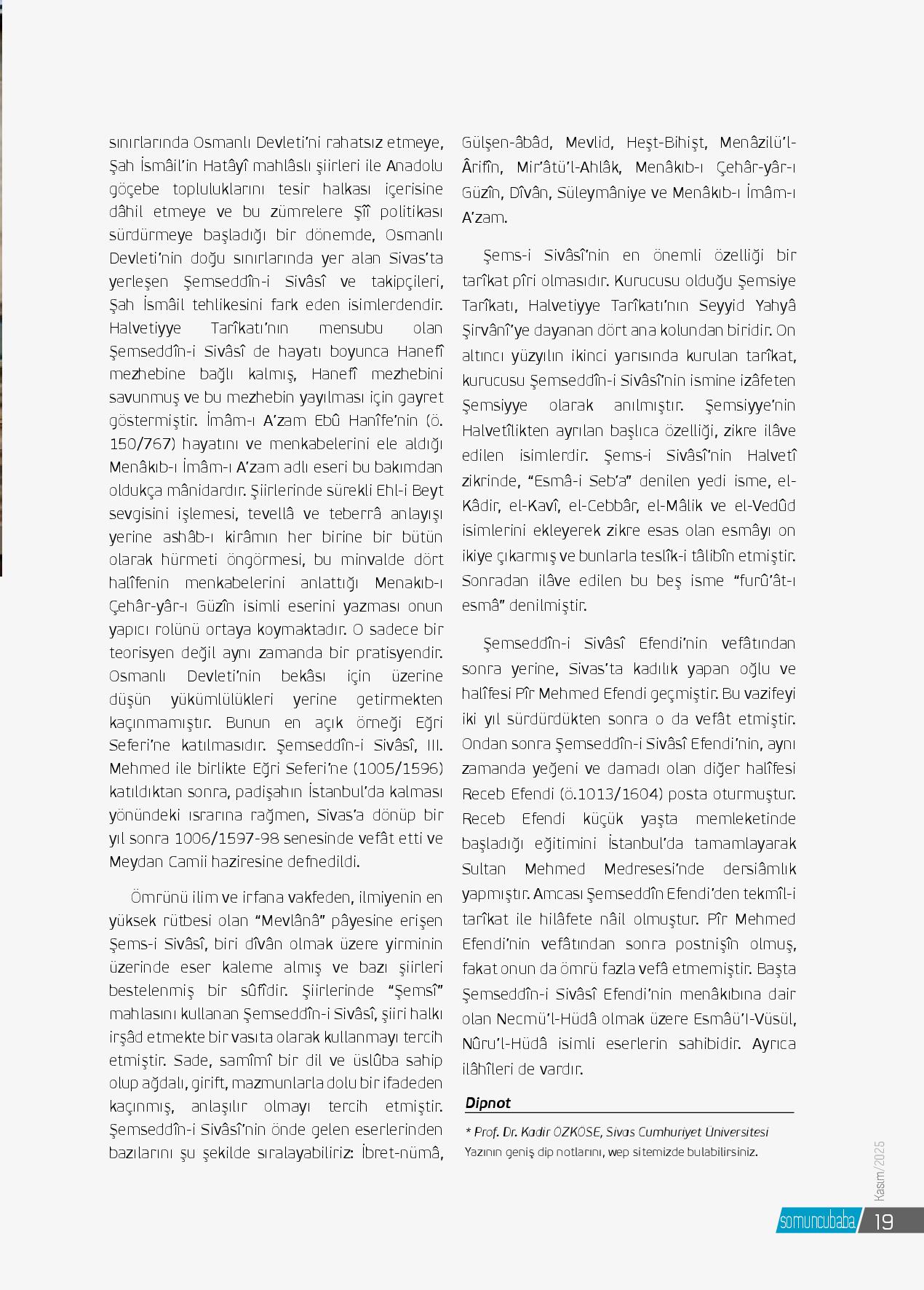 Anadolu’nun kalbi Sivas, tarih boyunca yalnızca coğrafî bir merkez değil, aynı zamanda mânevî bir menzildir. Selçuklu’dan Osmanlı’ya, Cumhuriyet’e uzanan bu şehir; ilim, irfan ve tasavvufun köklü bir yatağı olmuştur. Bu mâneviyat nehrinin en berrak ka...