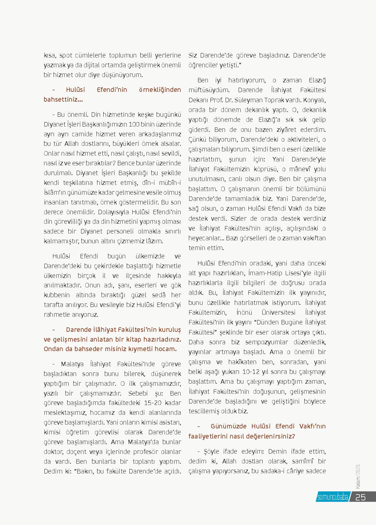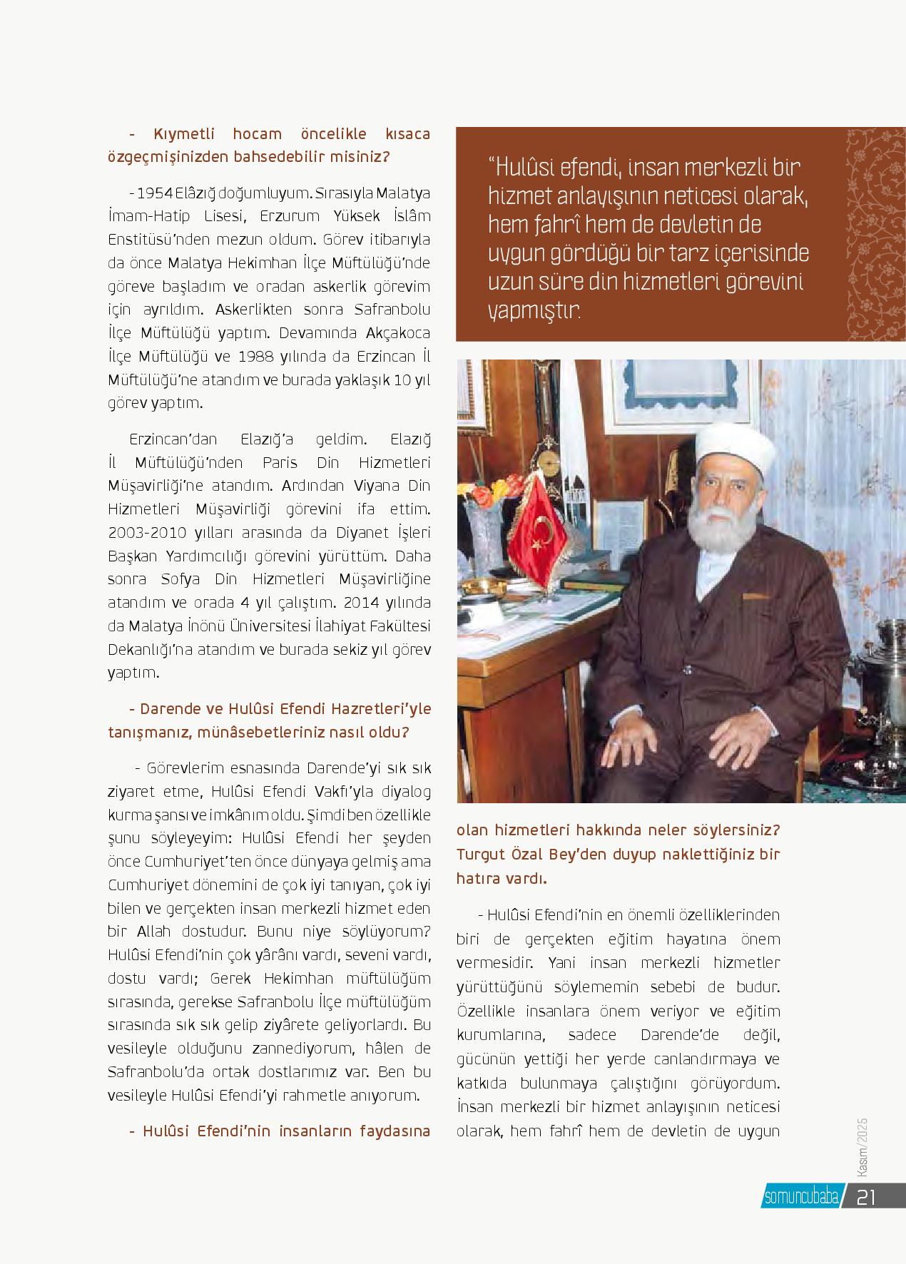 - Kıymetli hocam öncelikle kısaca özgeçmişinizden bahsedebilir misiniz?- 1954 Elâzığ doğumluyum. Sırasıyla Malatya İmam-Hatip Lisesi, Erzurum Yüksek İslâm Enstitüsü’nden mezun oldum. Görev itibarıyla da önce Malatya Hekimhan İlçe Müftülüğü’nd...