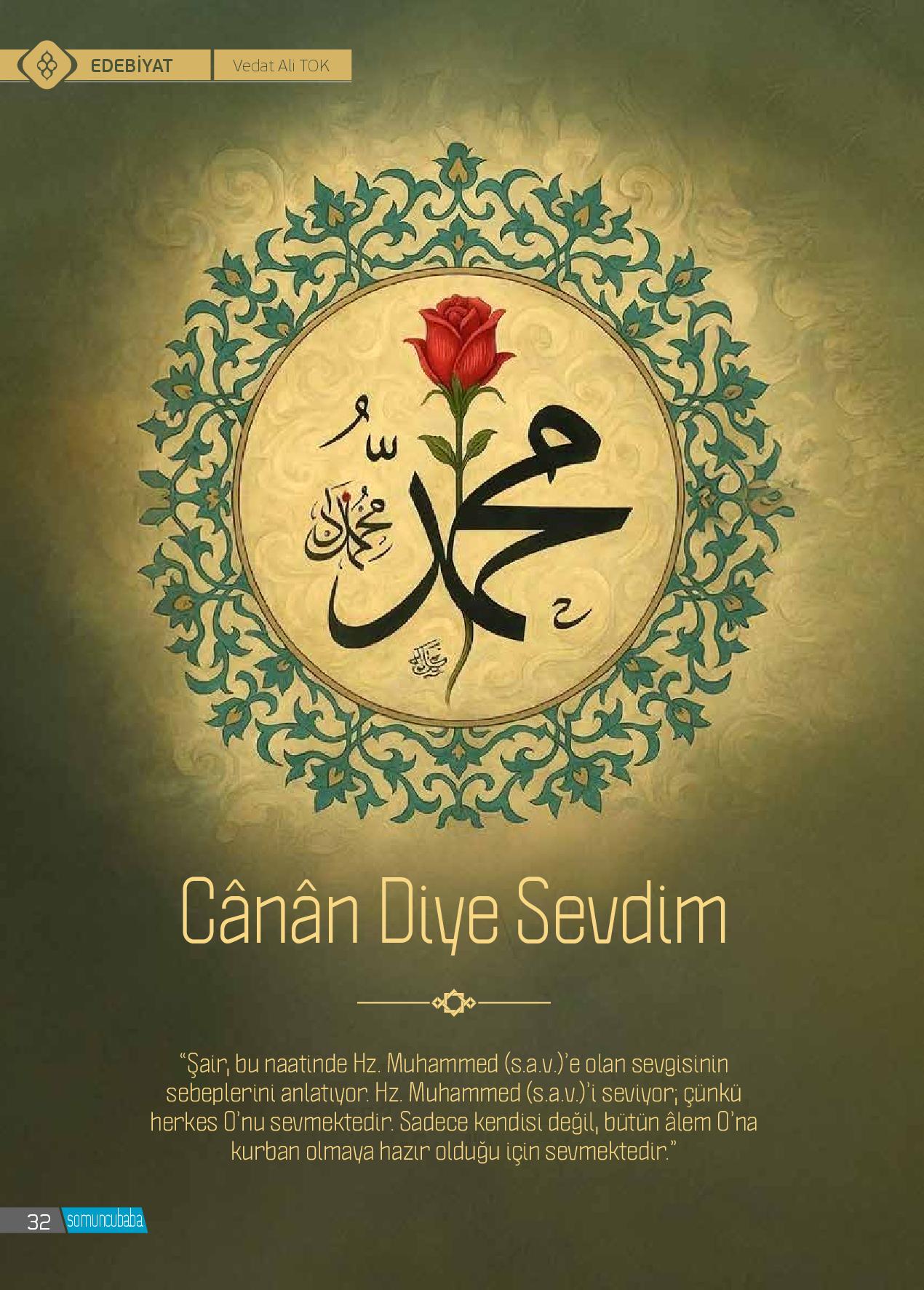 Sevdim seni hep canlara cânân diye sevdimBir ben değil âlem sana kurbân diye sevdimEcrâm-ı felek levh ü kalem mest-i nigâhınDîdârına âşık ulu Yezdân diye sevdimMahşerde nebîler bile senden medet isterGül yüzlü melekler sana hayrân diye sevdimAşkınla buhurdân gibi tütmede bu kalbimSe...