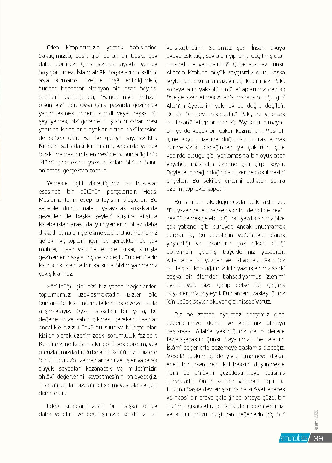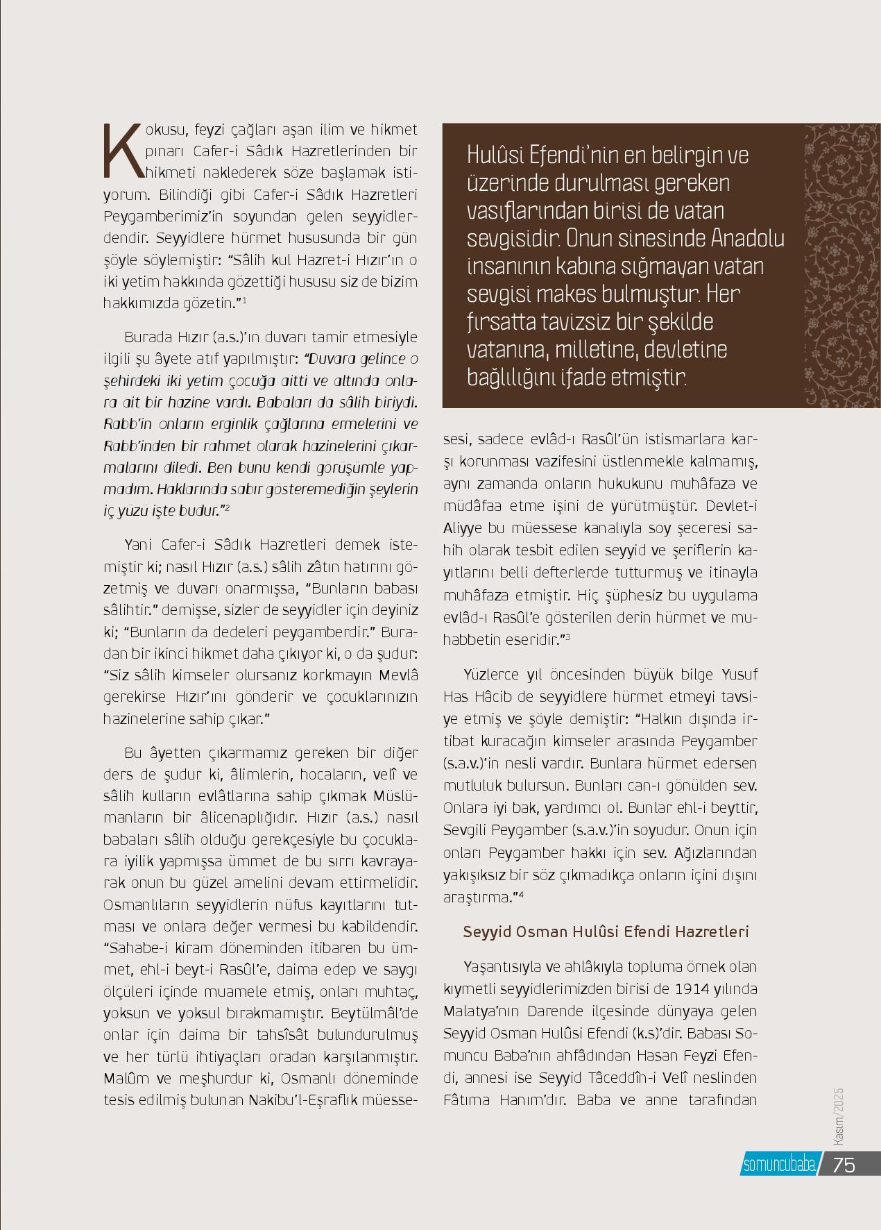 Kokusu, feyzi çağları aşan ilim ve hikmet pınarı Cafer-i Sâdık Hazretlerinden bir hikmeti naklederek söze başlamak istiyorum. Bilindiği gibi Cafer-i Sâdık Hazretleri Peygamberimiz’in soyundan gelen seyyidlerdendir. Seyyidlere hürmet hususunda bir gün şöyle söylemiştir: “Sâli...