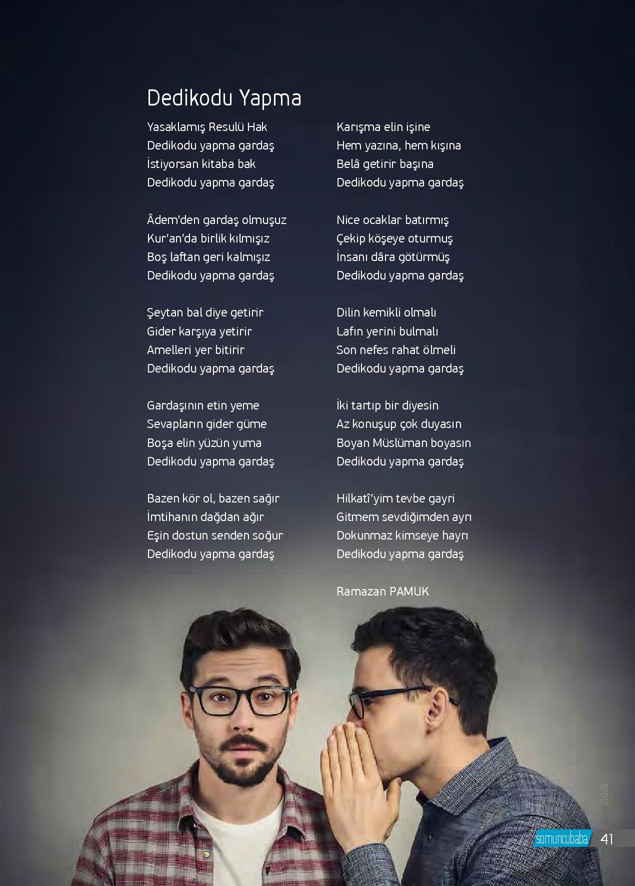 Yasaklamış Resulü HakDedikodu yapma gardaşİstiyorsan kitaba bakDedikodu yapma gardaşAdem’den gardaş olmuşuzKur’an da birlik kılmışızBoş laftan geri kalmışızDedikodu yapma gardaş &...