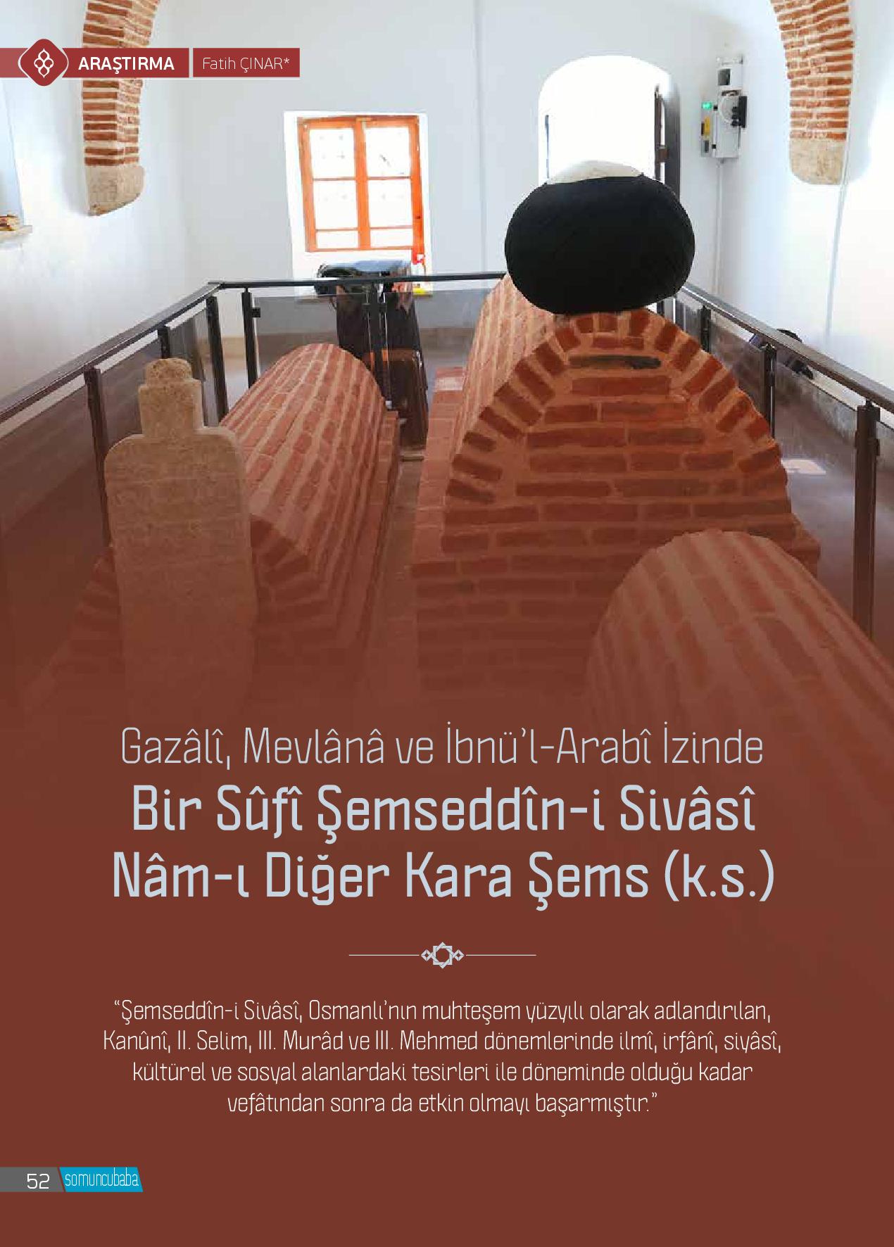 Gazâlî, Mevlânâ ve İbnü’l-Arabî İzinde Bir Sûfî Şemseddîn-i Sivâsî Nâm-ı Diğer Kara Şems (k.s.)