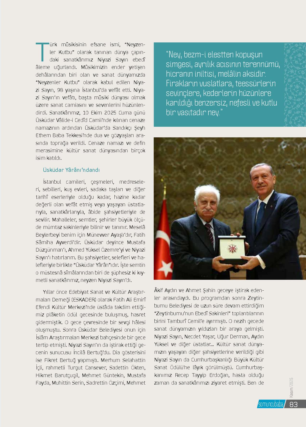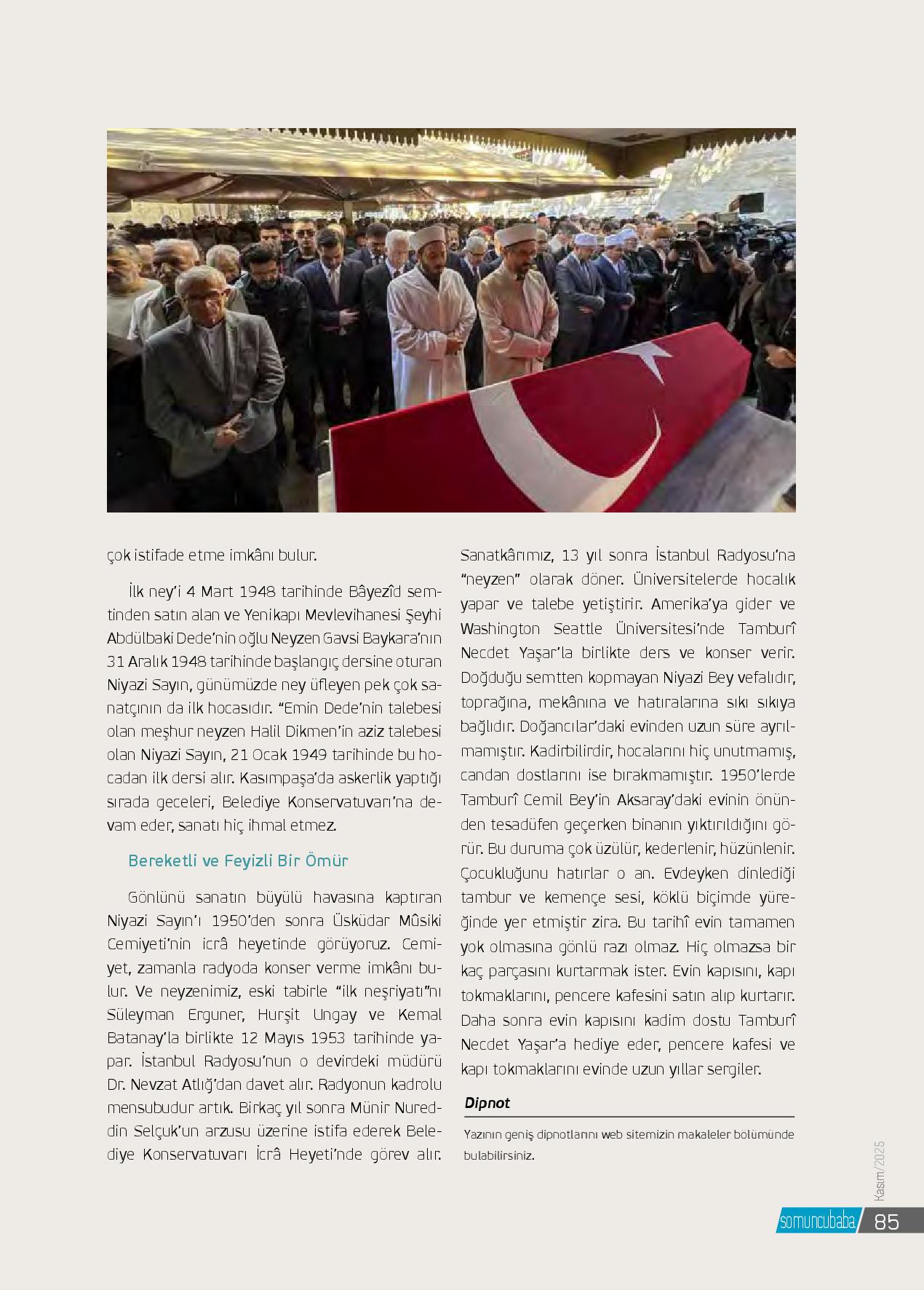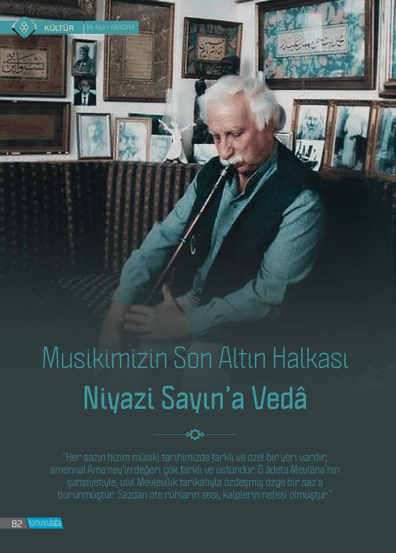 Türk mûsikisinin efsane ismi, “Neyzenler Kutbu” olarak tanınan dünya çapındaki sanatkârımız Niyazi Sayın ebedî âleme uğurlandı. Mûsikimizin ender yetişen dehalarından biri olan ve sanat dünyamızda “Neyzenler Kutbu” olarak kabul edilen Niyazi Sayın, 9...