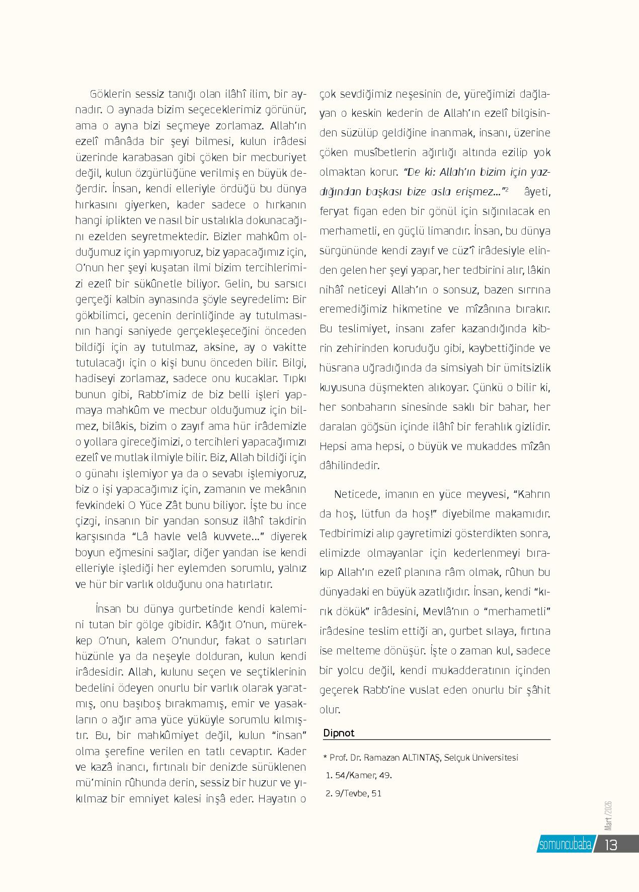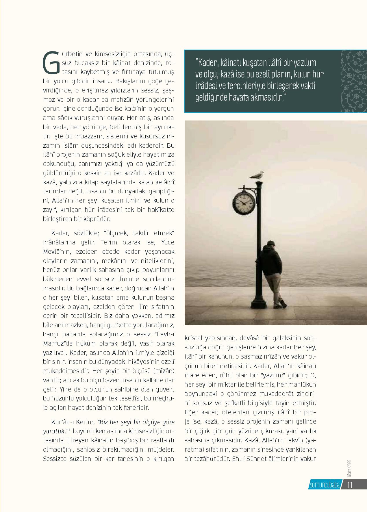 Gurbetin ve kimsesizliğin ortasında, uçsuz bucaksız bir kâinat denizinde, rotasını kaybetmiş ve fırtınaya tutulmuş bir yolcu gibidir insan… Bakışlarını göğe çevirdiğinde, o erişilmez yıldızların sessiz, şaşmaz ve bir o kadar da mahzûn yörüngelerini görür. İçine döndüğün...