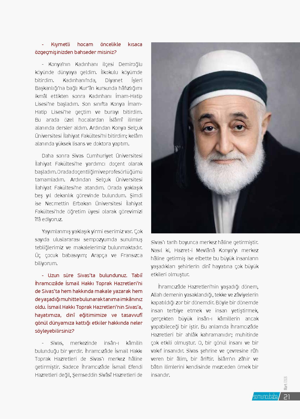 - Kıymetli hocam öncelikle kısaca özgeçmişinizden bahseder misiniz?- Konya’nın Kadınhanı ilçesi Demiroğlu köyünde dünyaya geldim. İlkokulu köyümde bitirdim. Kadınhanı’nda, Diyanet İşleri Başkanlığı’na bağlı Kur’ân kursunda hâfızlığımı ikmâl ettikten sonra Kadın...