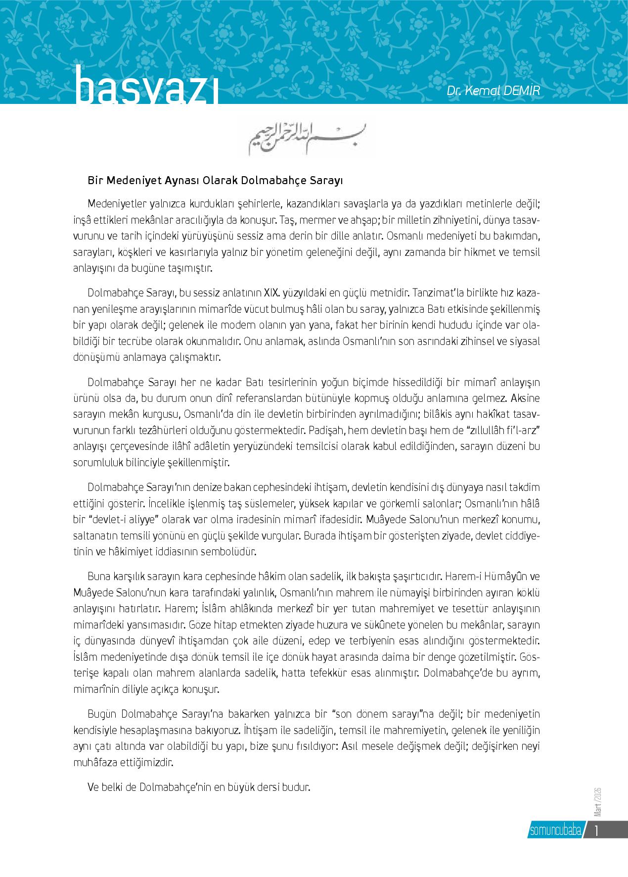 Medeniyetler yalnızca kurdukları şehirlerle, kazandıkları savaşlarla ya da yazdıkları metinlerle değil; inşâ ettikleri mekânlar aracılığıyla da konuşur. Taş, mermer ve ahşap; bir milletin zihniyetini, dünya tasavvurunu ve tarih içindeki yürüyüşünü sessiz ...