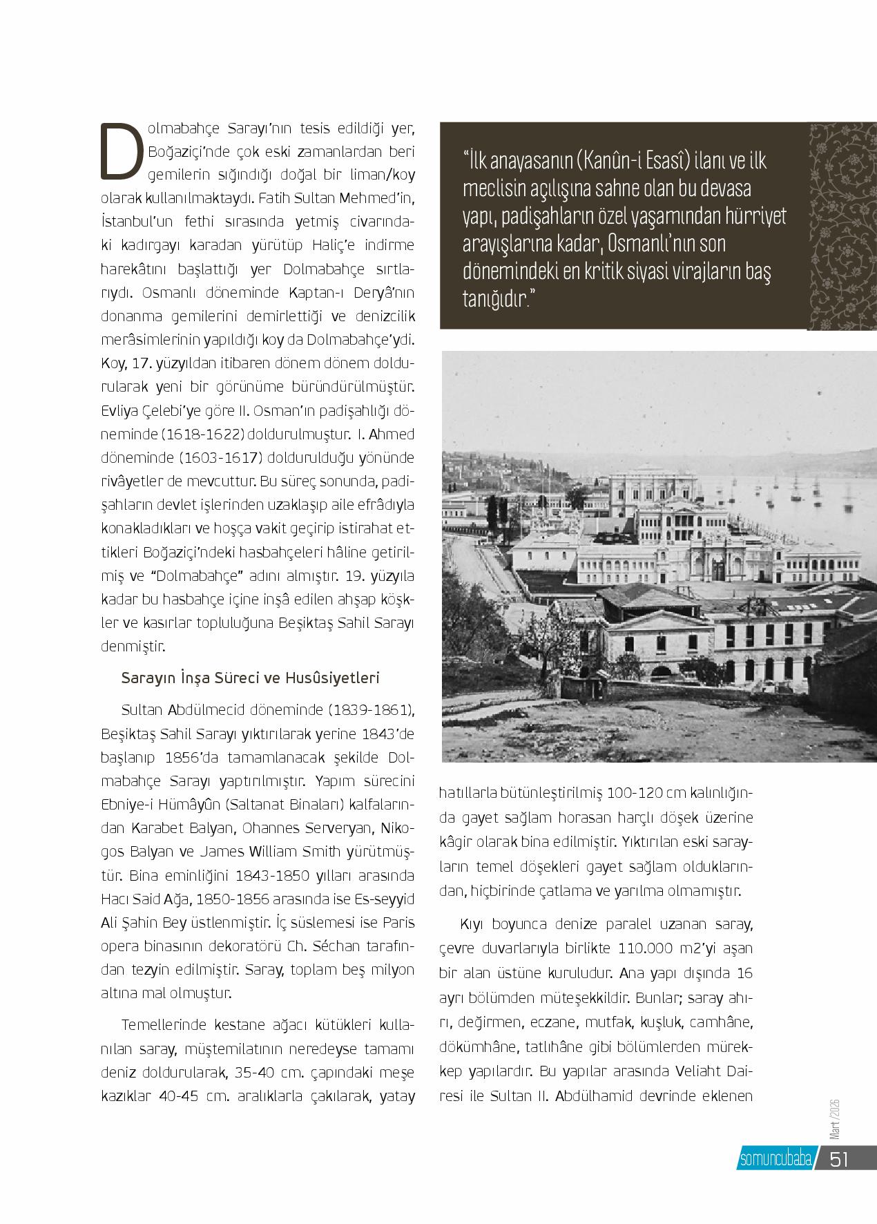Dolmabahçe Sarayı’nın tesis edildiği yer, Boğaziçi’nde çok eski zamanlardan beri gemilerin sığındığı doğal bir liman/koy olarak kullanılmaktaydı.Fatih Sultan Mehmed’in, İstanbul’un fethi sırasında yetmiş civarındaki kadırgayı karadan yürütüp Haliç’e indirme ...