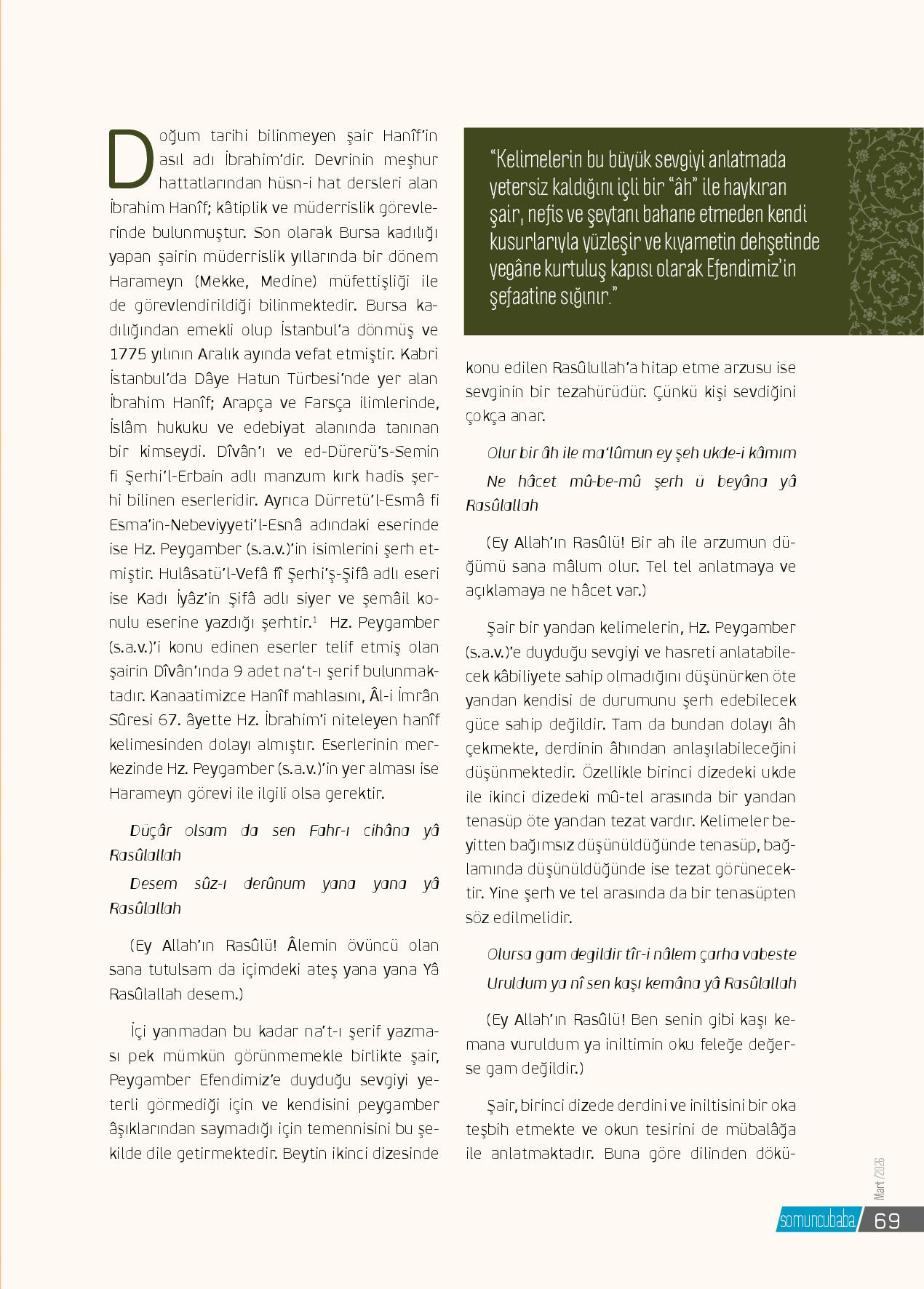 Yâ Habîballah kaçan kalkar cemâlinden nikâbMahvolur nûr-ı ziyâ salmaz cihâna âfitâb Sanki fânûs-ı hayâlindir hiyâm-i âsumânDâima şem’-i cemâlin ile döner mâhitâbÂlem ü âdem müzeyyen nûr-ı zâtınla seninZikr-i evsâf-ı...