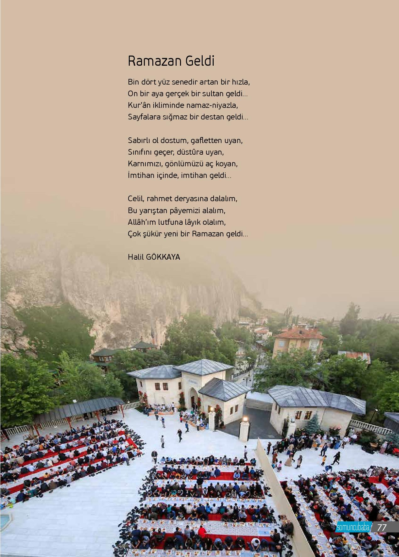 Bin dört yüz senedir artan bir hızla, On bir aya gerçek bir sultan geldi...Kur’ân ikliminde namaz-niyazla,Sayfalara sığmaz bir destan geldi...Sabırlı ol dostum, gafletten uyan,Sınıfını geçer, düstûra uyan,Karnımızı, gönlümüzü aç koyan,İmtihan içinde, imtihan geldi...Celil, rahmet...