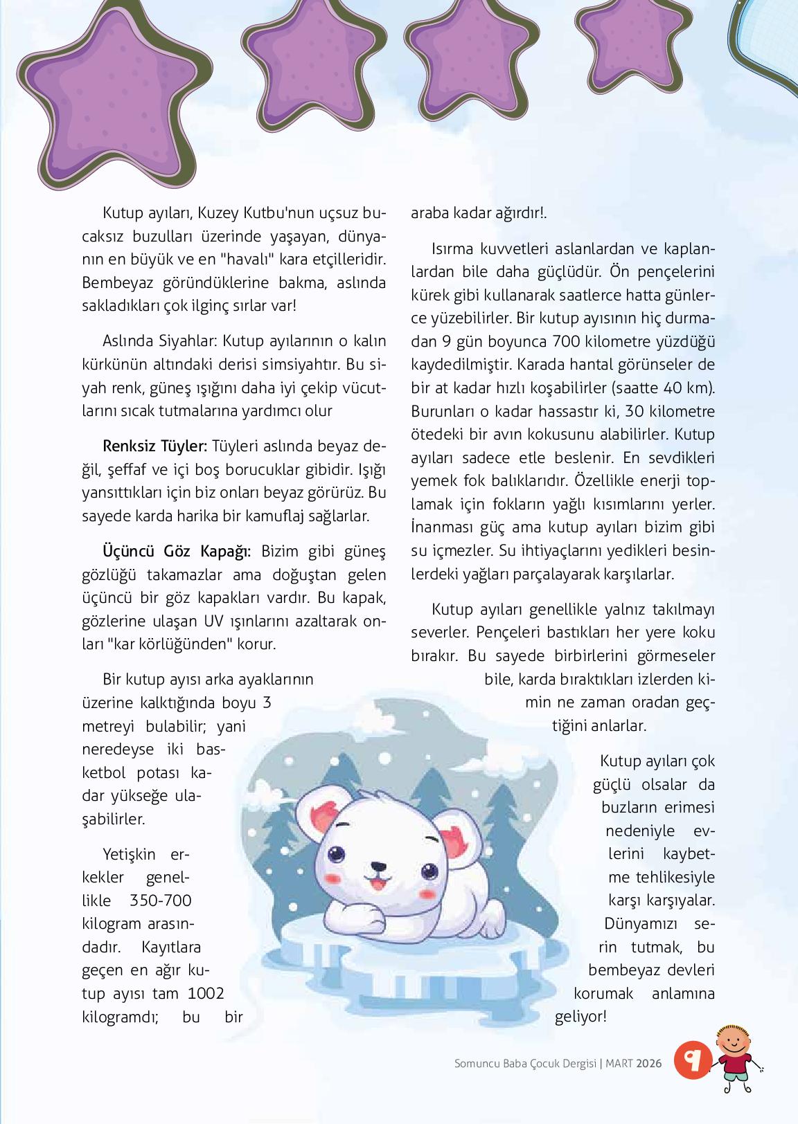 Kutup ayıları, Kuzey Kutbu'nun uçsuz bucaksız buzulları üzerinde yaşayan, dünyanın en büyük ve en "havalı" kara etçilleridir. Bembeyaz göründüklerine bakma, aslında sakladıkları çok ilginç sırlar var!Aslında Siyahlar: Kutup ayılarının o kalın kürkünün altındaki derisi simsiyahtır. Bu si...
