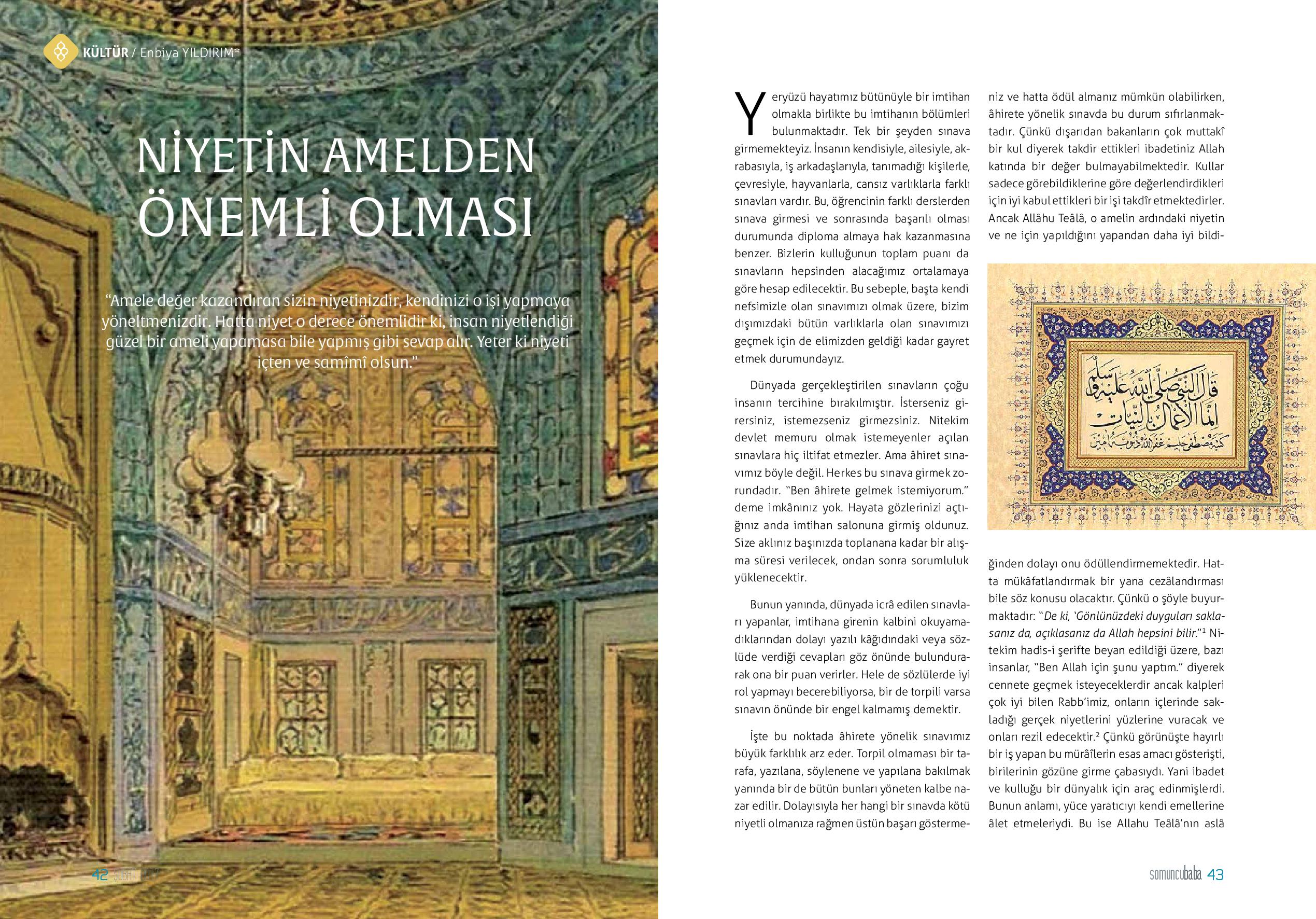 NİYETİN AMELDEN ÖNEMLİ OLMASI