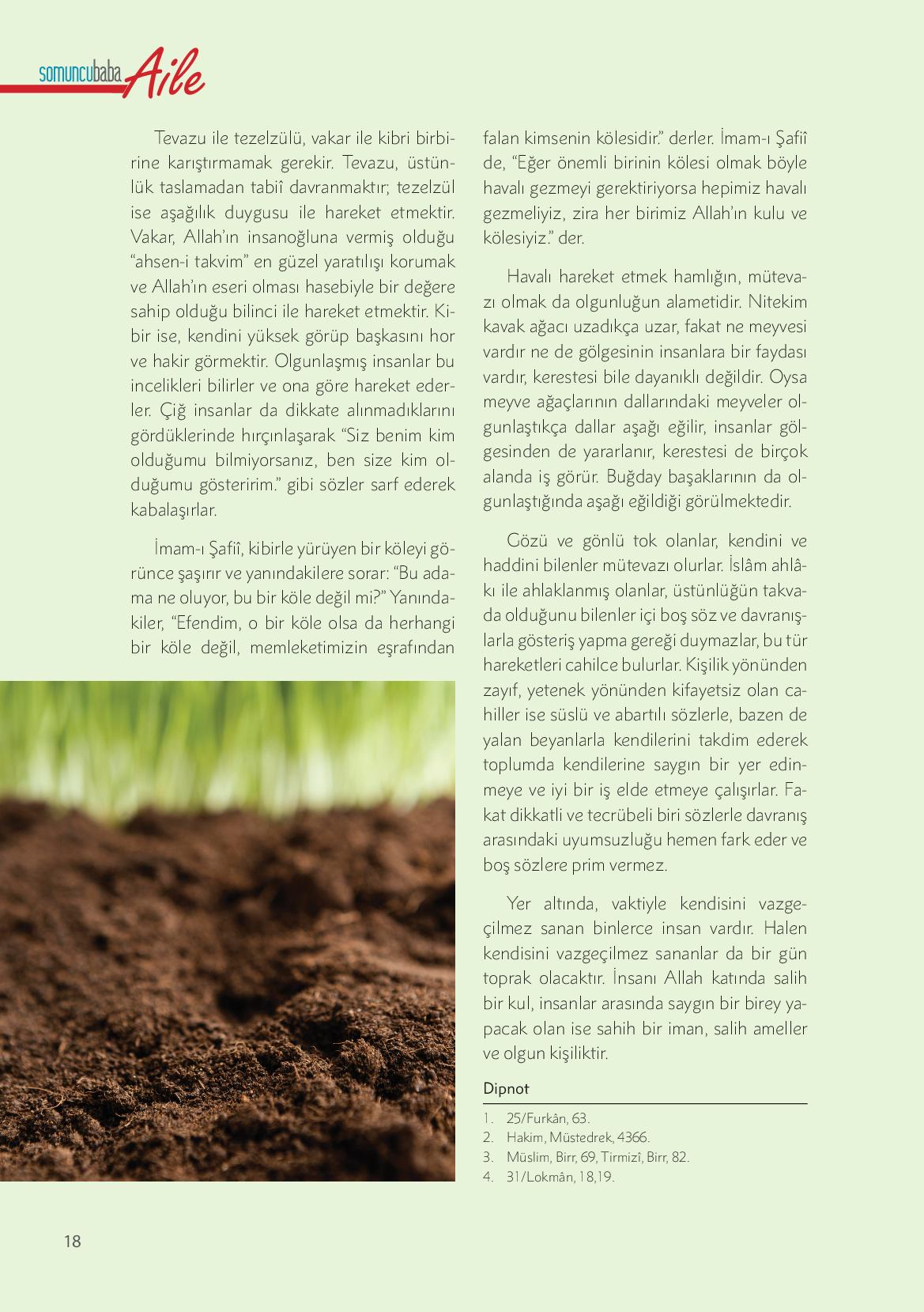 Tevazu, insanın alçak gönüllü olması, kendini beğenmişlikten ve böbürlenmekten uzak tutması, gurur ve kibirden arınmış bir hayatı yaşam haline getirmesidir. Yaratılmış her bir canlıya saygı, şefkat ve merhamet göstermesi, kibar davranmasıdır. İnsan hangi mevkide olursa olsun Allah'ın kulu ...