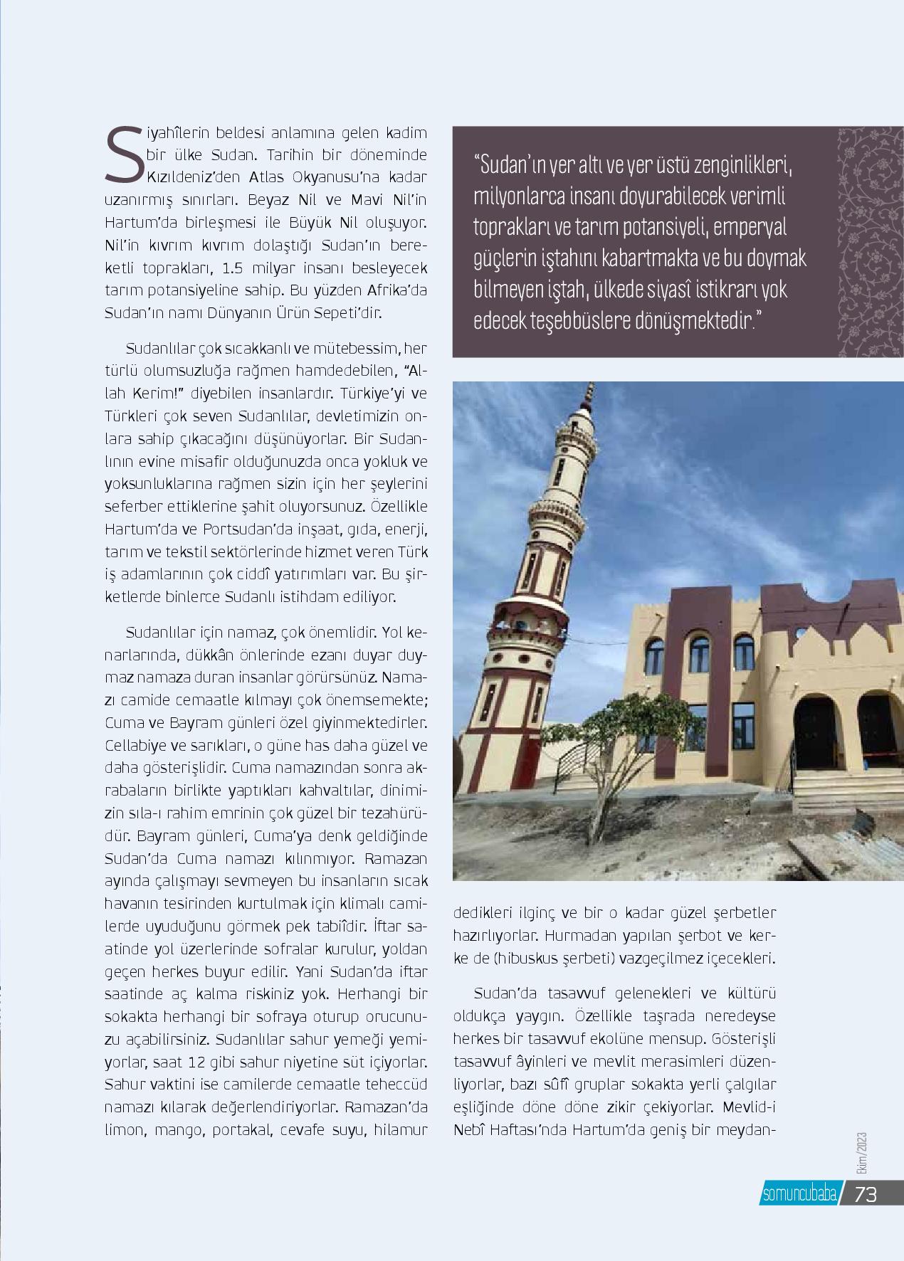 Siyahîlerin beldesi anlamına gelen kadim bir ülke Sudan. Tarihin bir döneminde Kızıldeniz’den Atlas Okyanusu’na kadar uzanırmış sınırları. Beyaz Nil ve Mavi Nil’in Hartum’da birleşmesi ile Büyük Nil oluşuyor. Nil’in kıvrım kıvrım dolaştığı Sudan’ın bereketli toprakları, 1.5 milyar i...